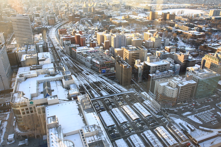 | こちらは札幌駅西側です。ビルの上にうっすらと雪が積もっています。 |